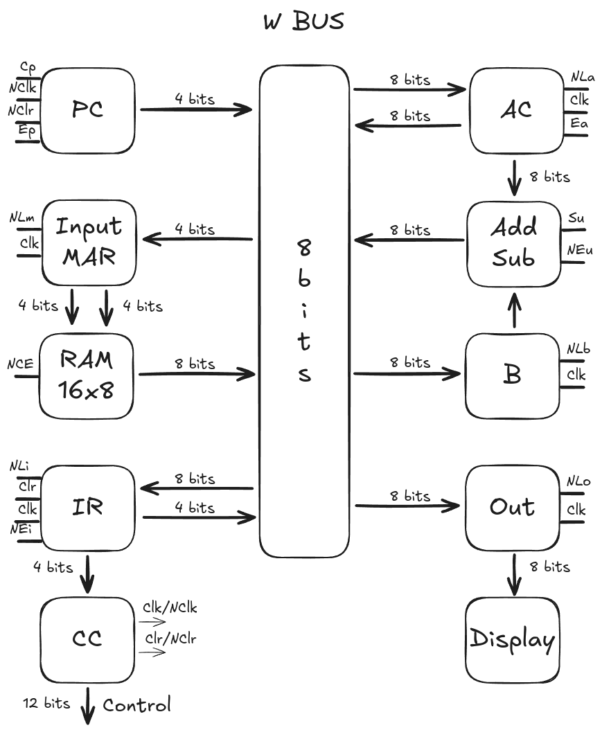 - NLb - Sinal usado para carregar dados do W bus para o B. Sinal invertido.