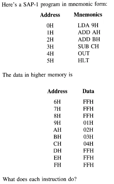 Section titled “2. Instruções do SAP I”O conjunto de instruções do SAP I é bastante enxuto, consistindo em apenas 5 operações. As figuras 14.03 e 14.04 exibem essas operações possíveis.