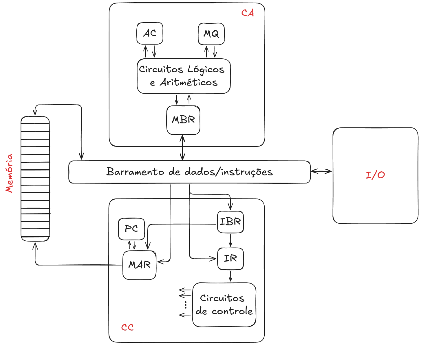 Para entender melhor como funcionaria um computador com essa arquitetura, vamos estudar mais a fundo o funcionamento do segundo computador eletrônico feito por von Neumann, o IAS.