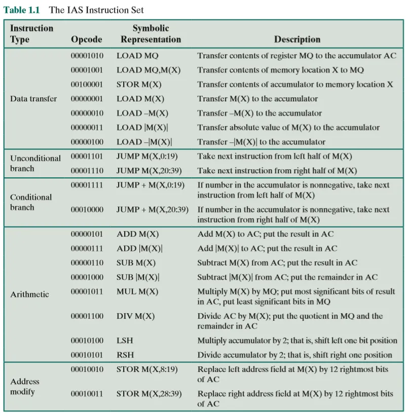 A figura 12.07 apresenta a tabela completa de instruções do IAS.